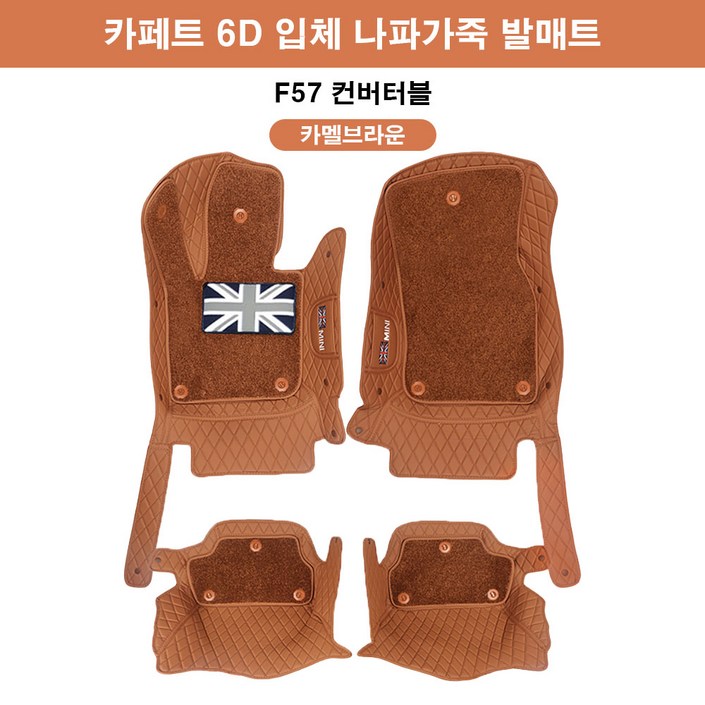 도우팩토리미니쿠퍼 6D 카페트 바닥매트 나파가죽 카페트 매트 앞뒤1세트, 카멜브라운, F57 컨버터블6D