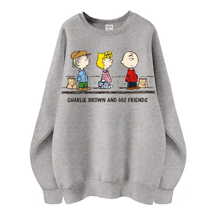 스누피 정품 남녀공용 오버핏 캐릭터 라운드 맨투맨 빅사이즈 데일리 티 루즈핏 커플 티셔츠 남자 여성 롱티 단체티 찰리친구들