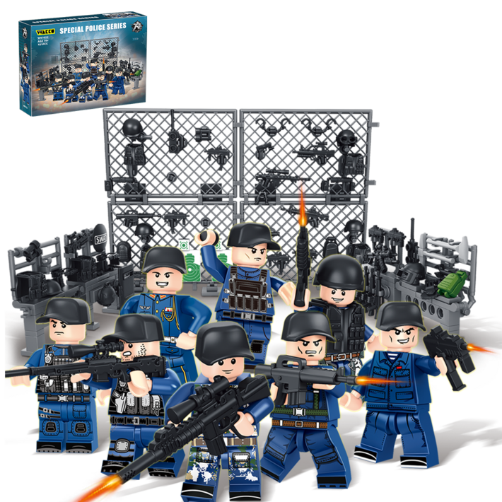 Wakku 시티 경찰특공대 레고호환블록 무기고 피규어 8in1블럭세트 pcs451, 1세트