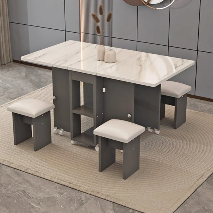 코에리브 접이식 아일랜드 확장형 4인용 식탁 테이블 세트, 1. 화이트 모조 설산그레이
