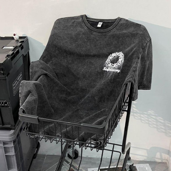 멜티 오버핏 피그먼트 나염 라운드 넥 반팔 티셔츠