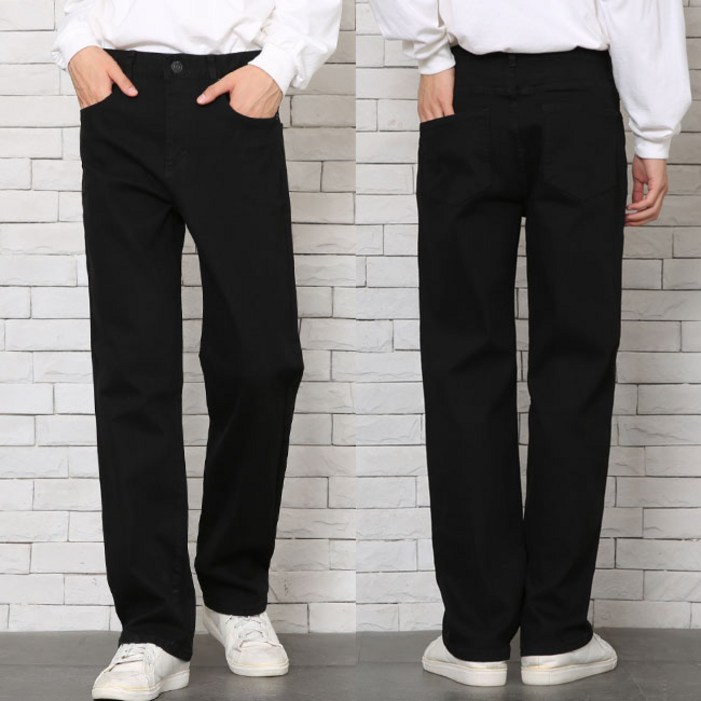 남자청바지 노멀 일자핏 올블랙 스판데님