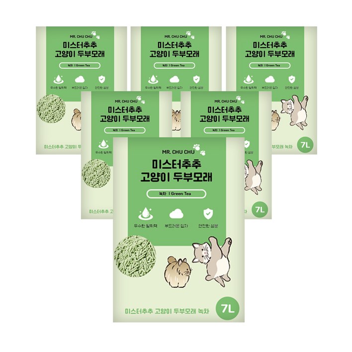 미스터추추 고양이 두부 모래, 7L, 6개, 녹차향