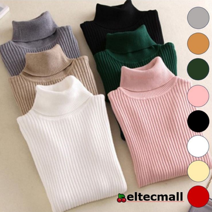 오늘출발 엘텍몰 여성 목폴라티 가을 겨울 도톰한 골지 터틀넥 여성 니트 티셔츠 물결폴라티