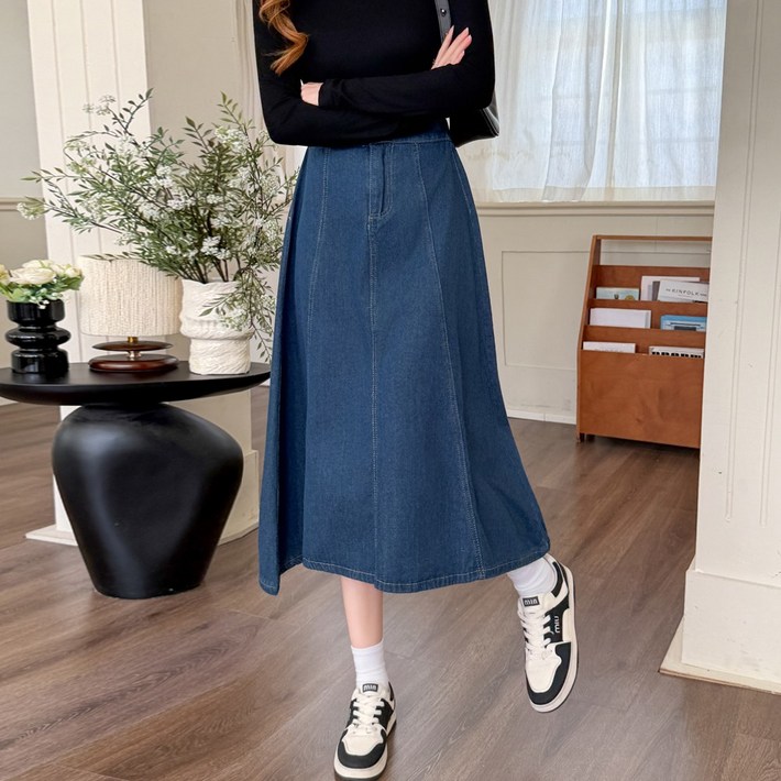 화지나무 빅사이즈 A라인 뒷 밴딩 데님 청치마 롱 스커트