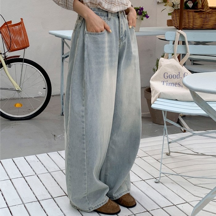 앤샵 롱,숏 기장선택 여성용 트베리 워싱빈티지 벌룬 사이드절개 와이드 데님 청바지4color