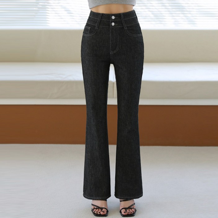 시크폭스 여성용 논페이드 골반필러패드 생지 부츠컷 데님팬츠