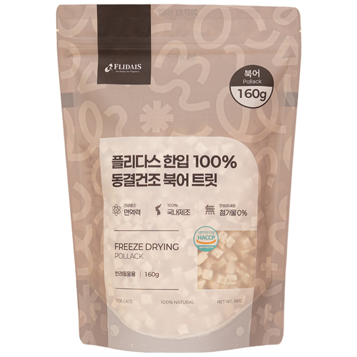 플리다스 한입 동결건조간식 160g 강아지 고양이 대용량 북어 치킨 트릿, 1개, 160g, 북어