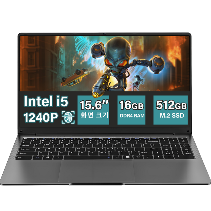 QQO 15.6인치 게이밍 노트북,IntelR CoreRI5 1240P,RAM 16GB,SSD 512GB2TB,가성비 노트북,지문 잠금 해제,사무 및 오락에 적합