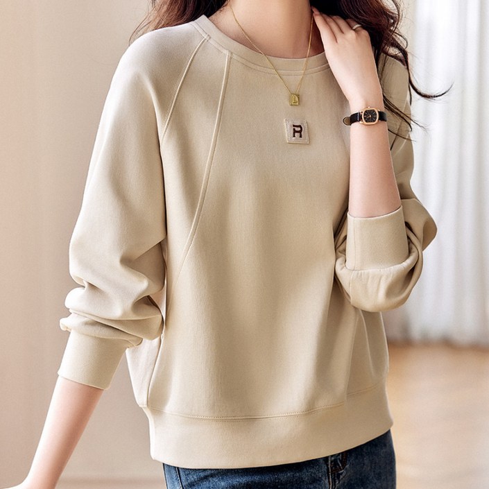 SAHINER 봄가을 여성 캐주얼 라운드넥 맨투맨 LWAWY56