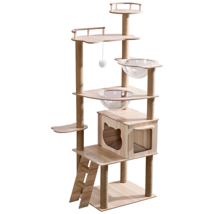 Pawprint 캣타워 고양이 스크래쳐, 안정적인 원목 구조로 튼튼하고 견고함, 다층 구조로 다양한 놀이와 휴식 공간 제공, 대형 및 소형 고양이 모두 사용 가능, 실내 인테리어에