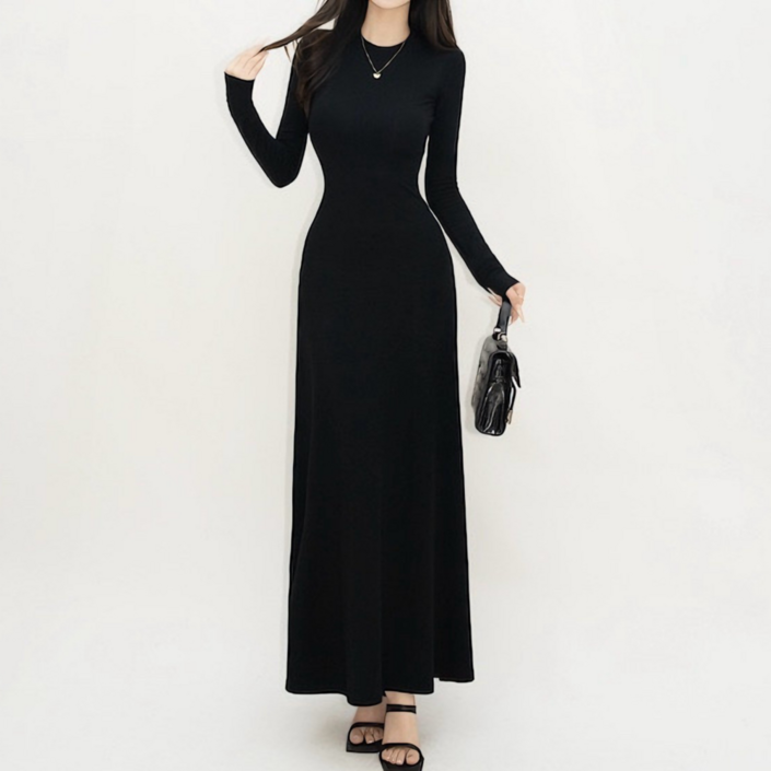 유니크코코 슬림핏 골지 니트 긴팔 롱 원피스 op5775