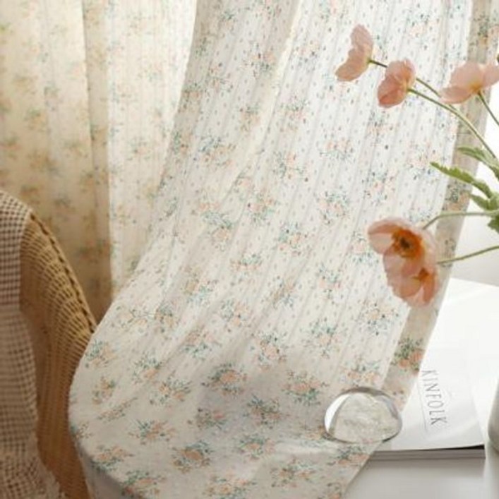 코티지플라워 빈티지 레이스 면 커튼 2color 기본핀형