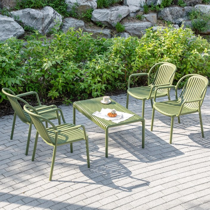 몬스 대 라운지 4인 야외 실내 카페 테이블 의자 세트, 옐로우